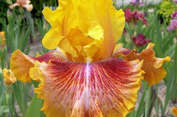 Первыми в списке садовых фаворитов смело можно поставить бородатые ирисы, их главная отличительная особенность — пушистая полоска, расположенная вдоль центральной жилки наружных, а иногда и внутренних лепестков цветка.