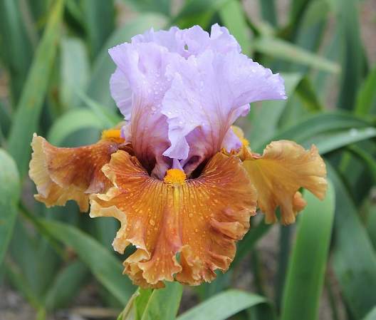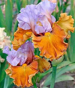 Ирис высокий бородатый Valley of Dreams (Вэлли ов Дримз). Необычный, стильный, отличной формы! Стандарты лавандово-лиловые, фолы яркие, охряно-коричневые, у бородки светлее. Бородка оранжевая с белым кончиком. Срок цветения средний. Высота 91 см.