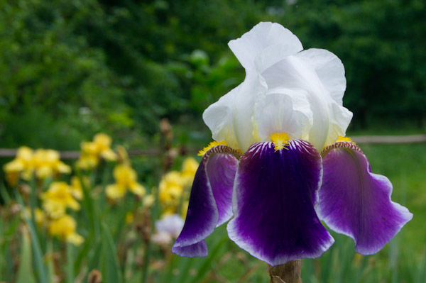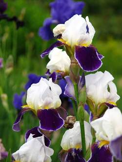 Ирис Wabash (Вабаш). Необычайно красивый ирис. Очень популярный. Причем, со временем его популярность только растет. Цветет обильно и без капризов. Фолы очень темно-фиолетовые, бархатные, по краю тонкая белая кайма; на их фоне ярко выделяется желтая бородка. Стандарты как облака — легкие, волнистые. Чудесный цветок!