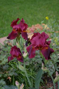 Ирис War Chief (Вар Чиф). Ярко красно-рубиновый с горящей желтой бородкой. Высокий, на прочном цветоносе с 3-4 ветвями и 11-13 бутонами — очень обильное цветение! Высота цветоноса 94 см. Есть награды.