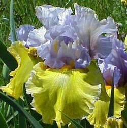 Ирис Wonderful To See (Вандефул То Си). Темно-сиренево-голубые стандарты и ярко-желтые фолы без горчичного оттенка, характерного для похожих сортов. Бородка золотистая.