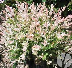 Ива Hakuro-Nishiki (Хакуро-Нишики). Раскидистый, до 3-м в диаметре, куст. Высота около 200 см. Крона густая, широкая. Побеги красноватые. Молодые листья розовые, в более зрелом возрасте пестрые. При ранней весенней обрезке стимулируется рост новых побегов с бело-розовыми листьями. Побеги слегка дугообразно наклонены в стороны.