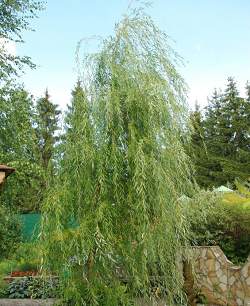 Одна из самых плакучих ив с узкой кроной, очень декоративна во время цветения!