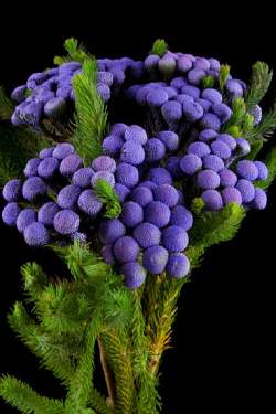 Бруния, или каапс, это экзотическое растение, которое очень долго сохраняет декоративность в срезке, но не является сухоцветом. Листья напоминают хвою, только очень мягкие, темно-зеленые, приятные. Цветки мелкие, собраны в головчатое соцветение-"пуговку" диаметром до 1,5 см. "Пуговки" собраны в щитковидное соцветие.