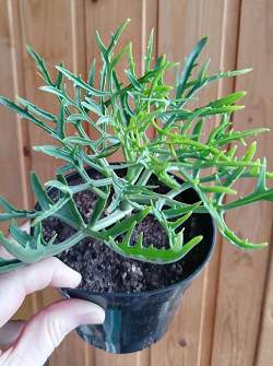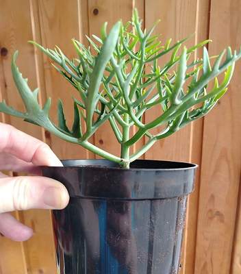 Каланхоэ лациниата Оленьи Рожки. Одно из самых неприхотливых суккулентных растений. Прощает хозяину все — забыли полить, залили, поставили на открытое солнце, в самую тень. Каланхоэ Оленьи Рожки все равно будет разрастаться и радовать чистой резной шапкой из побегов. Цветет весной мелкими желтыми цветками. Но, конечно, основная декоративная особенность — прекрасные ярко-зеленые мясистые листья, похожие на разветвленные рога.