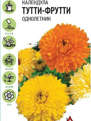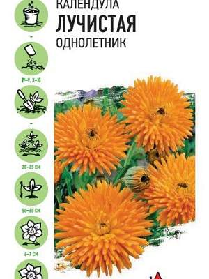 Календула Гейша. Популярное неприхотливое растение из семейства Астровых. Цветет с июня по сентябрь. Цветение обильное и продолжительное, особенно при удалении отцветших соцветий. Соцветия оранжевые с красными кончиками лепестков. Календула светолюбива и предпочитает легкие почвы, холодостойка — выдерживает до -5°C. Размножают прямым посевом в грунт. Семена высевают весной или под зиму, всходы появляются через 7-10 дней, их через некоторое время прореживают на расстоянии 20 см. Зацветает через 50-60 дней после посева. Используется для оформления участка и получения срезки.