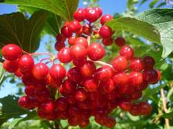Калина красная Соузга. Куст среднерослый (до 3 м), среднераскидистый. Вступает в плодоношение в пять лет. Урожайность высокая, (около 7-9 кг с дерева). Побеги прямые, средней длины, светло-серые, без опушения. Листья крупные, темно-зеленые. Кисть крупная, плотная.