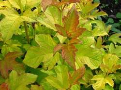 Калина обыкновенная Xanthocarpum (Ксантокарпум). Компактный густой кустарник. Листья зеленые, немного мельче, чем у исходного вида. Цветки в щитковидных соцветиях, краевые — крупные, стерильные, центральные — мелкие, фертильные. Плоды желтые, съедобные.