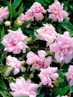 Калистегия плющелистная Flore Pleno (Флоре Плено). Многолетнее травянистое растение из семейства вьюнковых, морозостойкое. За сезон плети достигают длины 4 м. Стебли тонкие лазящие, на зиму отмирают. Без опоры плохо цветет. Зацветает в июне, в тени позднее. Цветение длится до заморозков. Цветы диаметром 8-9 см, светло-розовой окраски, махровые. Растение рекомендуется высаживать на полном солнце. В этом случае цветение будет обильным. Для стимулирования образования новых цветов можно удалять отцветшие.