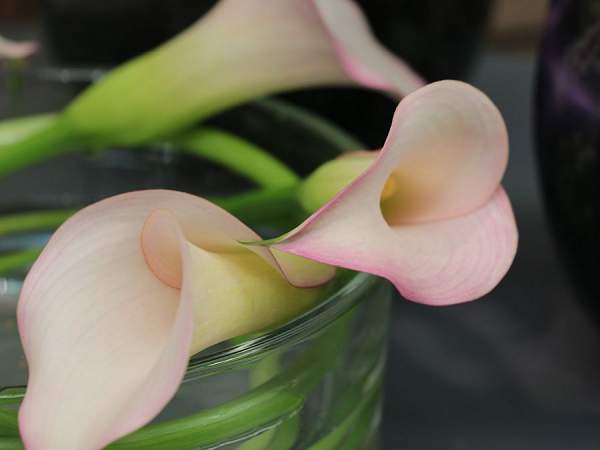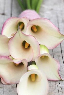 Калла Brasilia (Бразилия). Бутоны по форме напоминают ровные свечи. Со временем распускаются шикарные крупные цветы бело-розового цвета. Продолжительность цветения каждого цветоноса 3-4 недели. Высота восхитительной садовой каллы достигает 60 см, с темно-зелеными будто восковыми листьями, на которых расположен редкий крупный крап белого цвета. Цветут каллы в июне-августе.
