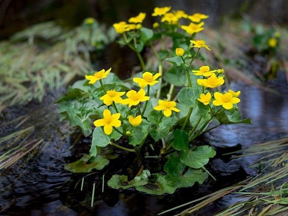 Калужница болотная. Короткокорневищный травянистый многолетник высотой 10-40 см и шириной 45 см. Стебель прямой или приподнимающийся, толстый, сочный, полый, не укореняющийся в узлах, ветвистый ближе к верху.