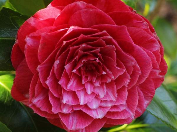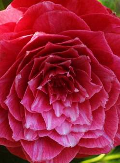 Камелия японская Princess Baciocchi (Принцесса Бачиокки). Куст высотой до 150 см. Вечнозеленый кустарник. Цветки крупные, темно-красные с белыми метками на кончиках лепестков, махровые, 10 см в диаметре. Цветет камелия с февраля по апрель. Красивую глянцевую листву сохраняет весь год. Морозостойкость до -18 °С. Лето лучше содержать в саду или на балконе, но беречь от прямых солнечных лучей. Зимой содержат в закрытых помещениях при температуре не выше 20 °С (застекленный балкон, лоджия).