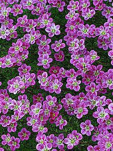 Камнеломка Арендса Carpet Purple Robe (Капет Пёпл Роуб). Образует густые ковры из мелких розеток. Цветоножки тонкие, на них расположены несколько колокольчатых, восходящих цветков различных оттенков — розовые, пурпурно-красные.