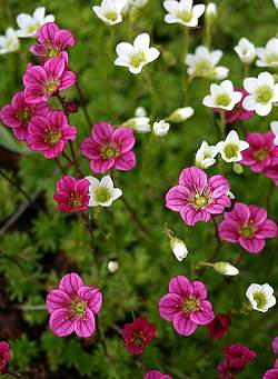 Камнеломка Арендса Mix (Микс). Растение образует низкие плотные подушечки листьев. По мере разрастания может превратиться в ковер. Цветки белые или розовые на высоких (до 20 см) цветоносах. Цветение эффектное, дружное в мае-июне.
