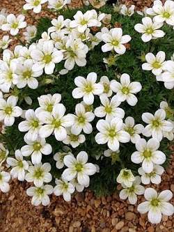 Камнеломка Арендса Carpet White (Карпет Вайт). Образуя густые ковры из мелких розеток, листья которых различной формы, лопастные, раздельные. Цветоножки тонкие, на них расположены несколько колокольчатых цветков. Цветет в мае-июне.