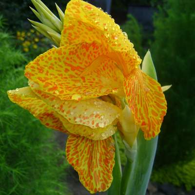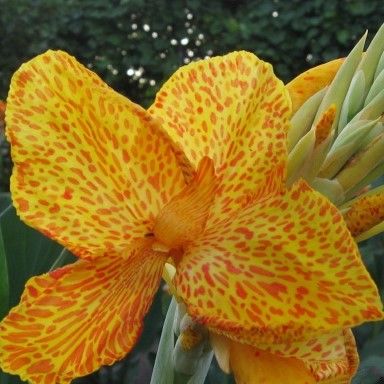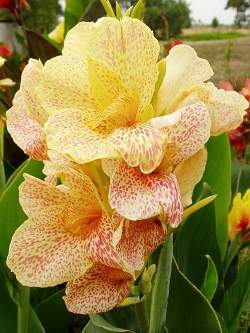 Канна Confetti (Конфетти). Цветы кремово-желтого цвета с вкраплениями.