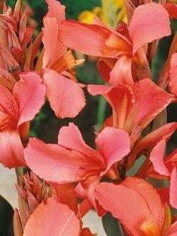 Канна Delibab (Делибаб). Многолетнее, травянистое растение с клубневидными корневищами. Высота растения 70 см. Стебли прямостоячие, неветвящиеся. Листья крупные, зеленые. Цветки красные с оранжевым оттенком.
