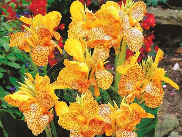 Желтая Канна радует цветами с лета до поздней осени, любит много солнца.