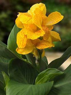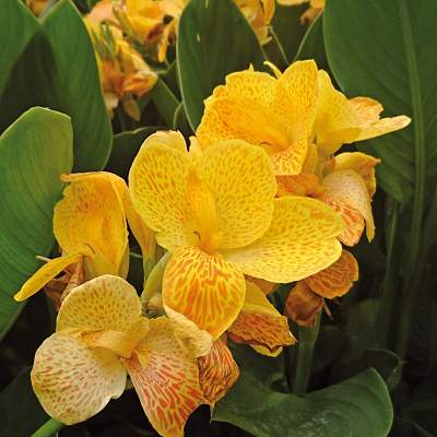 Канна Happy Emily (Хэппи Эмили). Сортосерия "Happy". Низкорослый компактный сорт высотой 50 см, пригоден для выращивания в горшках. Цветки большие, жёлтые с тёмно-оранжевыми пятнами. Листья зелёные. Цветение в июле-сентябре.