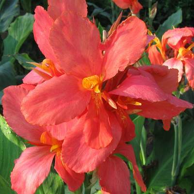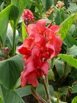 Канна Mrs. Oklahoma (Миссис Оклахома). Темно-розовые цветки на высоких прямых цветоносах. Листья широкие, слегка заострённые, большие, насыщенного зелёного цвета. Цветение начинается с нижних цветков. Сорт хорошо развивается на солнечных, защищенных от холодного ветра местах.