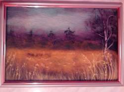 Картина Август. Сегодня существует очень много техник живописи: углем, маслом, акрилом, пастелью и мелками. Но каждый век приносит что-то новое. Например, шерстяная акварель, которая занимает в этом ряду особое место. Во-первых, этот вид рукоделия нельзя отнести ни к мозаике, ни к ткачеству, ни к живописи. Оказалось, что материал, из которого раньше делали только валенки и платки, в умелых руках может стать предметом искусства. Кстати, сама техника валяния из шерсти очень древняя. Первым подобным изделиям, которые нашли археологи, более восьми тысяч лет.