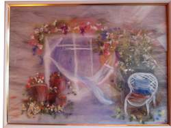 Картина Беседка. Сегодня существует очень много техник живописи: углем, маслом, акрилом, пастелью и мелками. Но каждый век приносит что-то новое. Например, шерстяная акварель, которая занимает в этом ряду особое место. Во-первых, этот вид рукоделия нельзя отнести ни к мозаике, ни к ткачеству, ни к живописи. Оказалось, что материал, из которого раньше делали только валенки и платки, в умелых руках может стать предметом искусства. Кстати, сама техника валяния из шерсти очень древняя. Первым подобным изделиям, которые нашли археологи, более восьми тысяч лет.