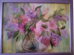 Картина Сирень. Сегодня существует очень много техник живописи: углем, маслом, акрилом, пастелью и мелками. Но каждый век приносит что-то новое. Например, шерстяная акварель, которая занимает в этом ряду особое место. Во-первых, этот вид рукоделия нельзя отнести ни к мозаике, ни к ткачеству, ни к живописи. Оказалось, что материал, из которого раньше делали только валенки и платки, в умелых руках может стать предметом искусства. Кстати, сама техника валяния из шерсти очень древняя. Первым подобным изделиям, которые нашли археологи, более восьми тысяч лет.
