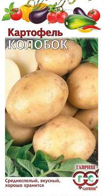 Картофель Колобок 0,025 г. Сорт-популяция среднего срока созревания, столового назначения. Клубни округлые, с жёлтой кожурой и слегка желтоватой мякотью, с высоким содержанием сухого вещества и крахмала, хорошо разваривается, при варке не темнеет, отличного вкуса и хорошо хранится. Устойчив к переувлажнению.