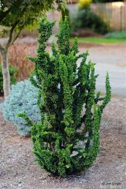Кипарисовик тупой Chirimen (Чиримен). Невысокий медленнорастущий кустарник. Высота 1,2-1,5 м, ширина 0,4-0,6 м, данные для 10-ти летнего возраста. Хвоя зелёная.