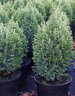 Кипарисовик лавсона Сноу Уайт (Chamaecyparis lawsoniana Snow White). Дерево до 60-70 м высотой, с узко конусовидной, книзу расширяющейся кроной, с узкой верхушкой, обычно склоненной набок. Хорошо зимует. Любит полутень и защищенное от северных ветров возвышенное место. Любит полив и опрыскивание. Мало повреждается вредителями и болезнями.