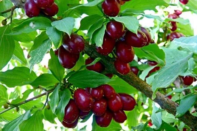Кизил обыкновенный. Молодые побеги кизила изначально обладают зеленовато-желтым оттенком, но со временем покрываются растрескивающейся корой серого цвета. Заостренные на концах листья растения отличаются цельной, удлиненно-эллиптической формой. Надо сказать, что листья кизила сверху имеют зеленый цвет и блестящую поверхность, тогда как снизу они более светлые. Кора кизила имеет красно-коричневый цвет. Плоды растения длиной в 4 см и весом 6 г не только сочные и съедобные, но и полезные. Соцветия растения в виде зонтика формируются еще до распускания листьев.