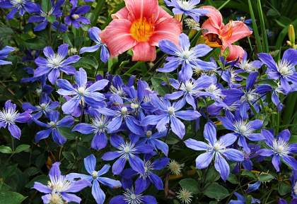 Клематис Arabella (Арабелла). Клематис цельнолистный 'Arabella' — эффектный клематис с очень обильным и продолжительным цветением. Может вести себя и как ампель, красиво свешиваясь с края террасы, и как почвопокровный, но лучше всего смотрится на невысоком обелиске.