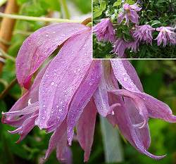 Клематис Ballet Skirt (Бэлей Скёт). Название этого сорта в переводе означает "пачка балерины", её напоминают цветки — полумахровые, светло-розовые, со светло-жёлтыми тычинками. Обильно цветёт весной на прошлогодних побегах, но немного цветов появляется также летом.
