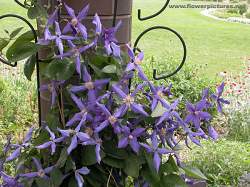 Вы быстро получите красивый цветочный ковер, ведь клематис Дуранди считается хорошим почвопокровным растением — он стелется по земле и красиво переплетается с другими растениями.