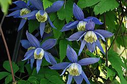 Цветки фиолетово-голубые с красиво контрастирующим пучком белых тычинок. Цветёт весной на прошлогодних побегах. Летом и осенью украшен декоративными соплодиями. Очень устойчив и малотребователен.