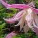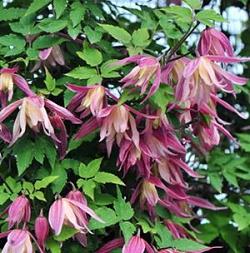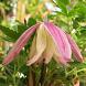 Клематис Janny (Дженни). Цветки розовые, полумахровые, колокольчатые, диаметром до 7 см с четырьмя тёмно-розовыми чашелистиками и многочисленными желтовато-светло-розовыми тычинками. Цветёт весной на прошлогодних побегах. Иногда может повторять цветение. С июня до осени декоративен причудливыми пушистыми плодами.