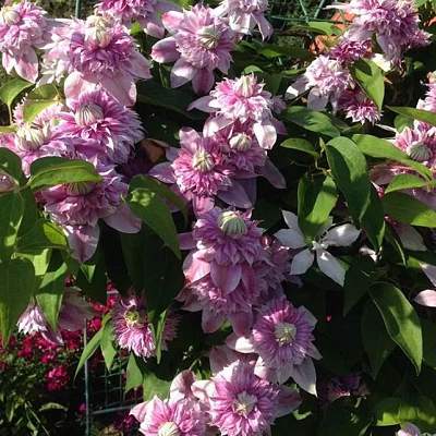 Лиана высокая, до 240 см, зимостойкая, группа обрезки вторая. Цветет с перерывом с июня по сентябрь. Жозефин — один из самых востребованных сортов, — прекрасно сочетается с розами. Лучше цветет на полном солнце. Подходит для выращивания в контейнере.