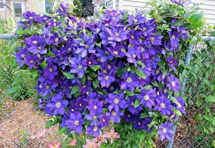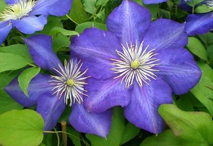Клематис Lady Betty Balfour (Леди Бетти Балфор). Сильнорастущий сорт, цветущий поздним летом, с середины июля до сентября. Цветки тёмно-голубовато-пурпурные с кремово-жёлтыми тычинками. Диаметр цветка до 16 см. Более обильно цветёт на солнечных местах. Хорошо подходит для обсадки беседок или высоких опор.