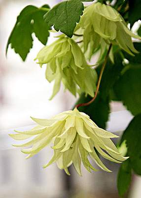 Цветет в мае и повторяет цветение, но уже менее обильно –летом. Имеет красивые темно-зеленые относительно крупные (до 21 см длины и 14 см ширины) листья — тройные, тройчатосложенные, с красивой фактуры и зубчатыми краями листочками. Достигает высоты 2-3 м. За опоры цепляется листовыми черешками. Морозостоек и неприхотлив. Любит хорошо освещенные места, но не слишком теплые. Переносит полутень.
