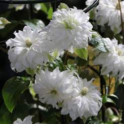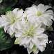 Автор характеризует свое творение как великолепный экземпляр махрового шарообразного белого клематиса с размером цветка 12-15 см.