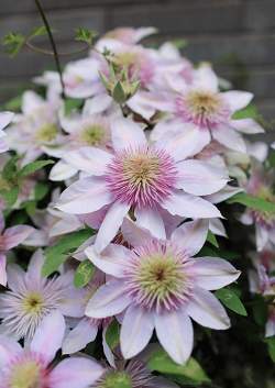 Клематис Moonglow (Мунглоу). Сорт Реймонда Эвисона (Англия, 2018 г.). Цветки очень красивые, крупные (до 15 см), махровые, светло-розового цвета. Цветет дважды за сезон. Высота лианы 250 см. Группа обрезки вторая.