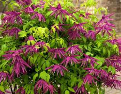 Клематис Octopus (Октопус). Шикарный княжик. Остроконечные лепестки, собранны в полумахровые цветки пурпурно-розового цвета с лимонно-жёлтым центром, диаметр цветков 10 см, один из самых крупных в своей группе. Цветёт весной на прошлогодних побегах. Повторное цветение летом. Для вертикального озеленения.