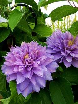Клематис Proteus (Протеус). Умереннорастущий сорт клематисов. Хорошо развивается на солнечных участках. Своей эффектностью Proteus обязан махровым розово-лиловым цветкам с желтыми пыльниками, появляющимся в июне-июле на прошлогодних побегах. На побегах текущего года цветки простые.