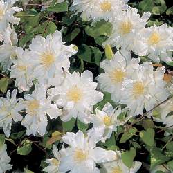 Клематис 'Sylvia Denny' относится ко 2-й группе обрезки. Создан в Англии, в 1983 году. "Сильвия Денни"очаровательный клематис с полумахровыми крупными, до 10-15 см в диаметре, цветами и желтыми тычинками, подчеркивающими белизну чашелистиков. Цветет дважды с мая по июнь и с августа по сентябрь, полумахровыми и простыми цветками. Цветение очень обильное и длительное. Высота от 150 до 300 см.