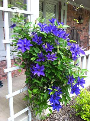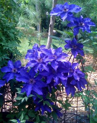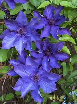 Клематис The President (Зе Президент). Назван в честь президента британского Королевского садоводческого сообщества. Очень легкий в выращивании, подходит для всех, кто еще не очень хорошо знаком с культурой клематисов. Устойчивый, низкий, обильноцветущий сорт. Цветки крупные, фиолетово-синие, с тёмно-красными тычинками. Цветёт с мая по июнь, повторно с июля до сентября.