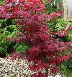 Клен веерный Atropurpureum (Атропурпуреум). По яркости и изяществу листьев в весеннее и осеннее время с успехом может конкурировать с изысканнейшими цветами. Хорош для групповых и одиночных посадок в защищенных уголках скверов и парков, возле дорожек. Весьма изменчив, образует много форм с различной окраской и конфигурацией листовой пластинки. В культуре с 1820 года.