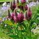 Клевер красноватый. Многолетнее травянистое растение до 90 см высотой. Стебли прямостоячие или восходящие. Листья в очертании яйцевидные, листочки ланцетные 4-8 см длиной и 1-1,5 см шириной, по краю неравномерно зубчатые, снизу с сеткой жилок.