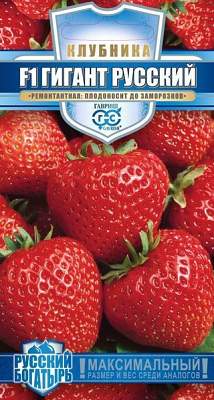 Клубника Гигант Русский F1 5 шт. Уникальный гибрид с очень крупными — 20-25 г (при первых сборах до 50 г!) ягодами. Благодаря раннему (в среднем на 2 недели раньше остальных крупноплодных садовых земляник) и непрерывному плодоношению, дает небывалый урожай, до 1-1,5 кг ягод с куста.