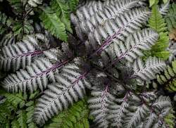 Кочедыжник ниппонский Ursula's Red (Урсулас Ред). Предпочитает кислую влажную почву в полутени, разрастается быстро. Произрастает в Корее, Японии, Вьетнаме и Китае и приобрел особую популярность за высокодекоративные листья.