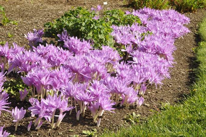 В саду безвременники используют для посадки группами на фоне газона, в сборных цветниках, альпинариях. Разросшиеся с годами куртины во время цветения производят чарующее впечатление. Они прекрасно обрамляют клумбу и хорошо смотрятся в легкой тени кустарников.